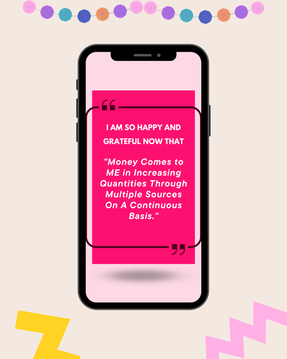 Daily Reminder: Set a positive intention every time you unlock your phone. Reinforce your commitment to manifesting wealth by viewing these affirmations throughout your day. Let your phone serve as a constant reminder of your financial aspirations.