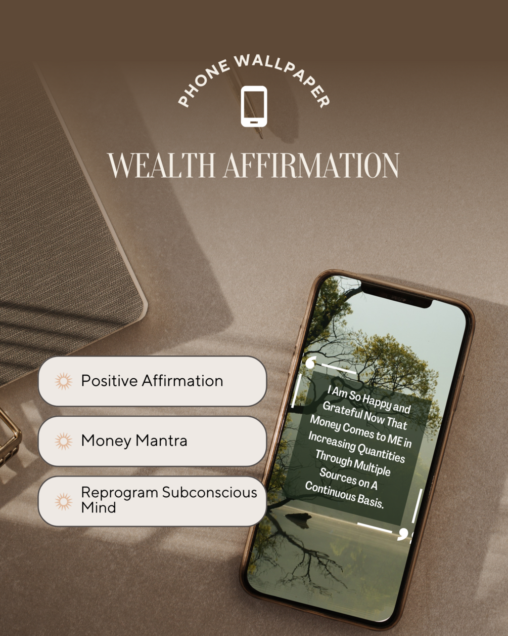 Daily Reminder: Set a positive intention every time you unlock your phone. Reinforce your commitment to manifesting wealth by viewing these affirmations throughout your day. Let your phone serve as a constant reminder of your financial aspirations.